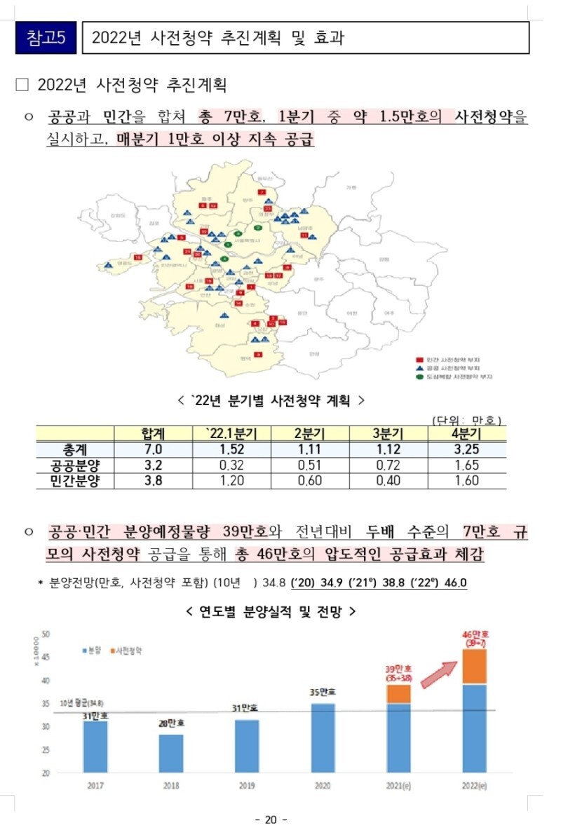 ㅇ 올해 공공 사전청약은 7월 이후 세 차례, 민간 사전청약은 11월 최초로 실시된 바 있으며, 시행결과 하남교산(52.4:1)·인천계양(52.6:1)·평택고덕(42.9:1) 등 이례적 경쟁률로 높은 관심을 받는 것은 물론, 주택시장 안정에도 큰 역할을 하고 있는 것으로 평가되고 있다.